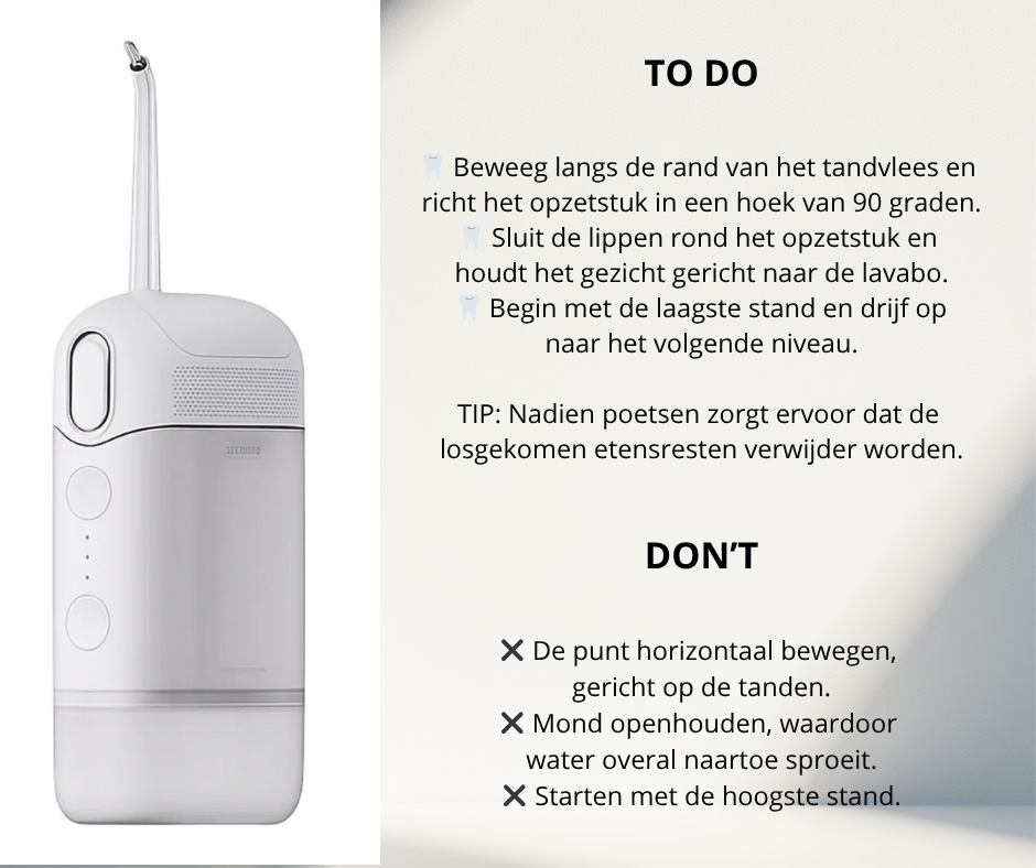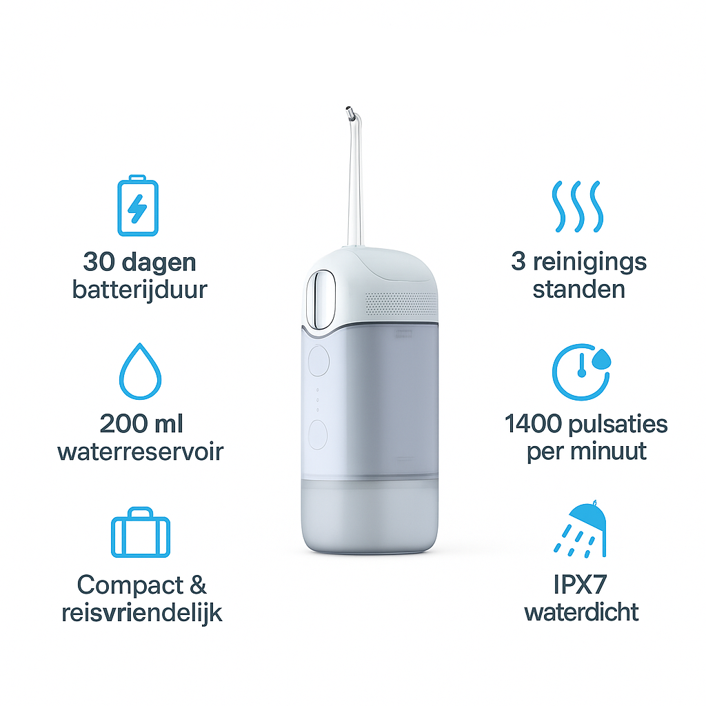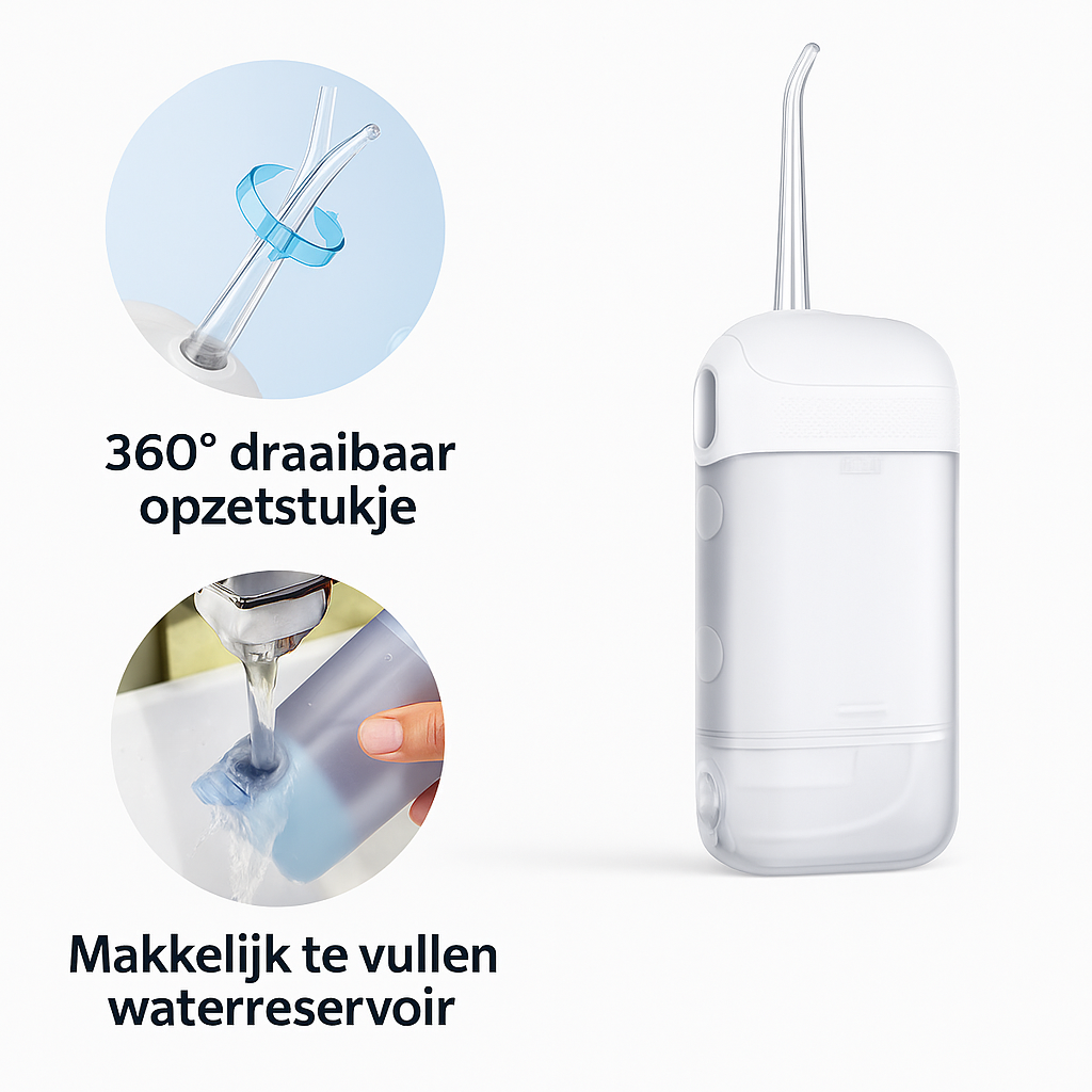 De krachtige waterstraal verwijdert tandplak en etensresten beter dan traditioneel flosdraad.